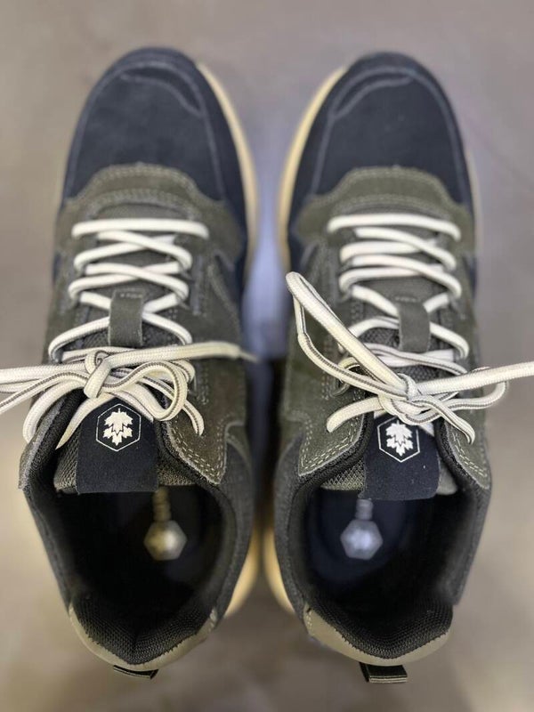 Sneakers in nabuck e inserti in tessuto. Lacci intercambiabili grigio scuro. Suola in gomma antiscivolo con logo.