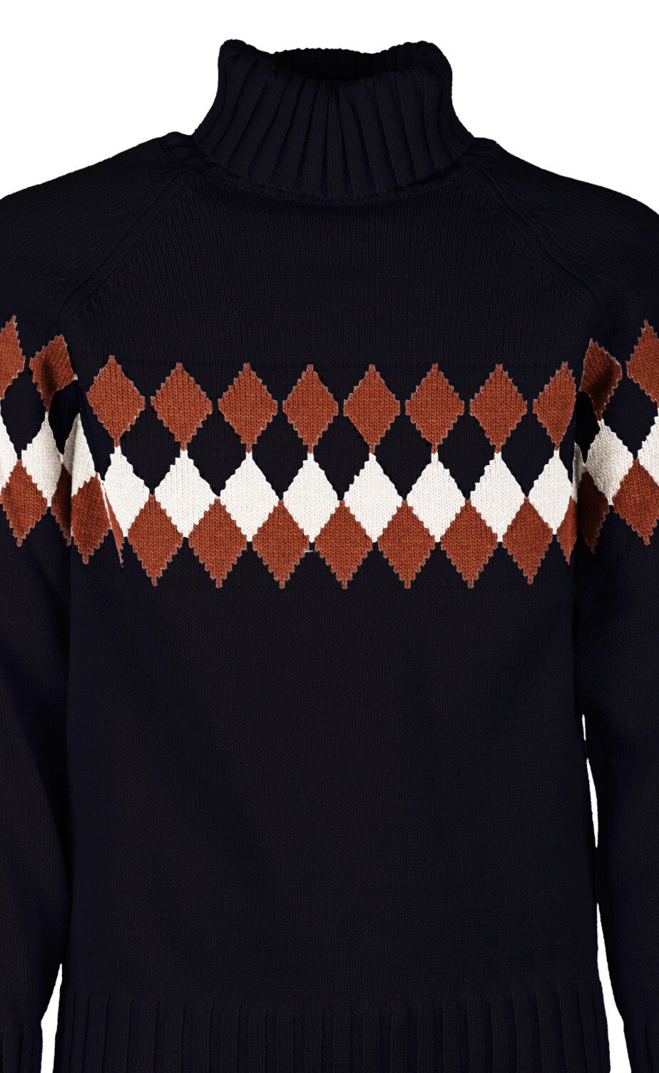 Dolcevita con stampa a rombi e dettaglio di logo sul fondo.